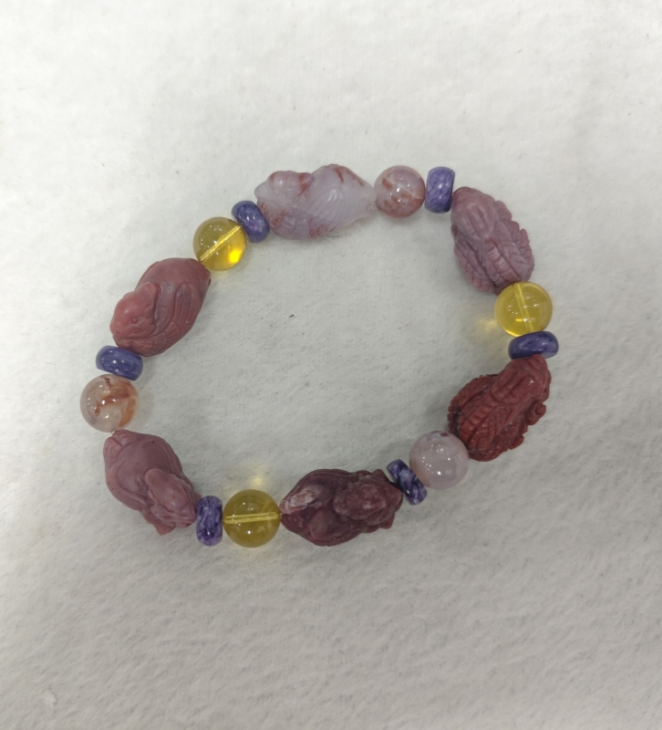 古紀螺紅瑪瑙白水晶方糖手串EH4074