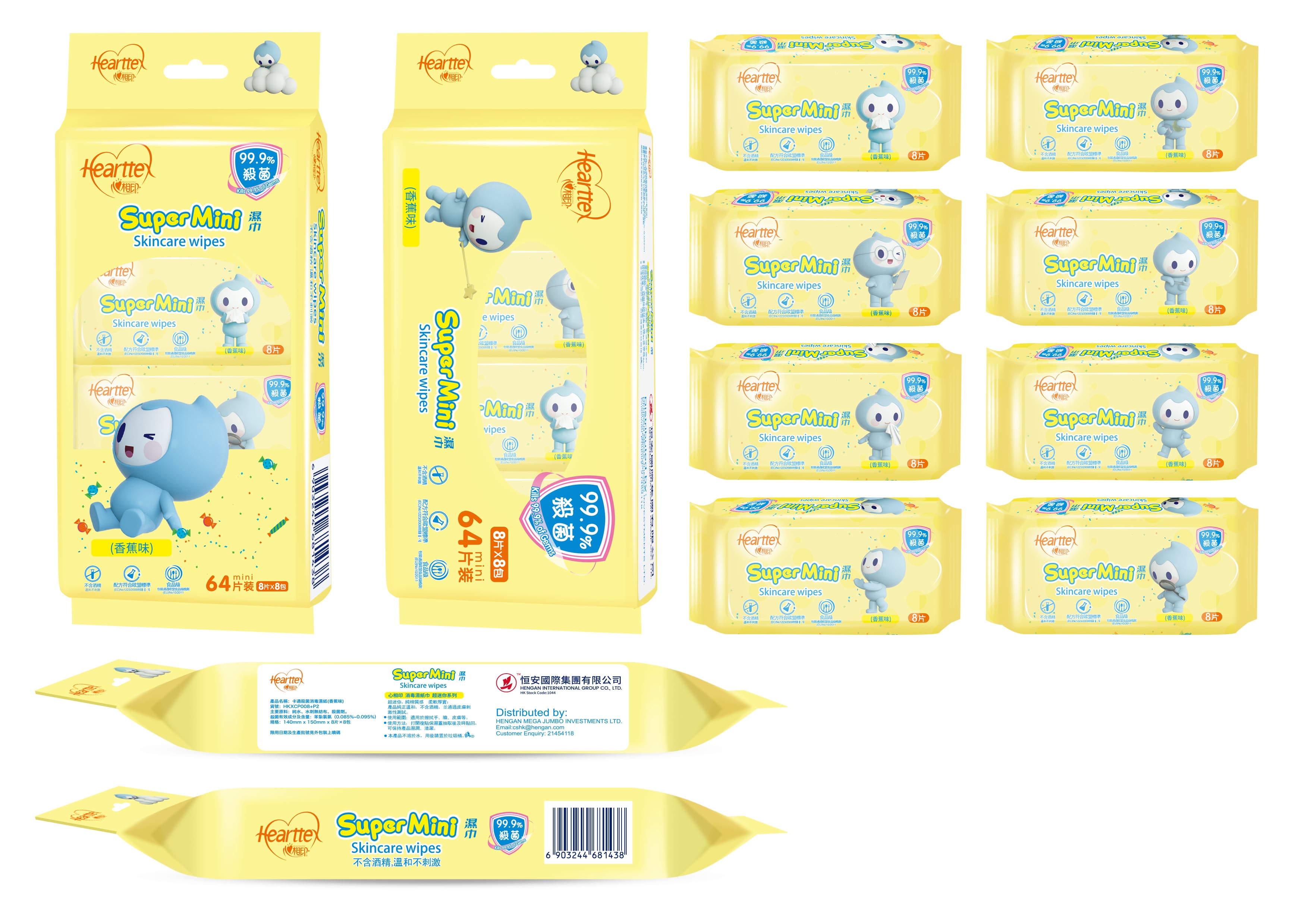 PM105 Hearttex 卡通系列 迷你濕紙巾 8片/小包(8包裝) 香蕉味