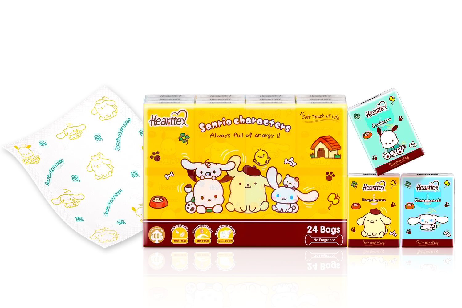 PM103 Hearttex Sanrio 4層 印花紙巾仔(24包裝) 公仔:pc狗,布甸狗,大耳狗