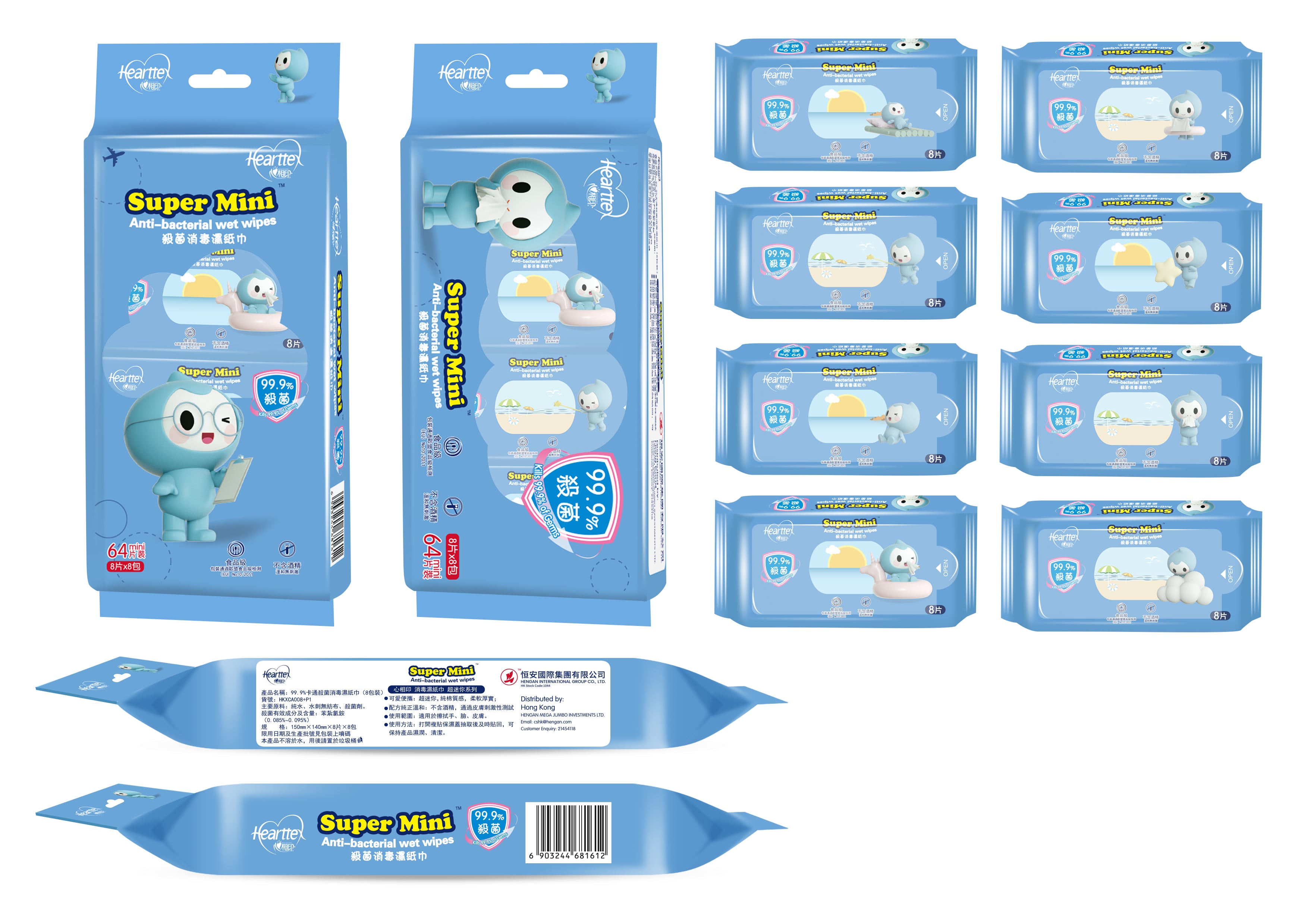 PM106 Hearttex 卡通系列 (殺菌)迷你濕紙巾 8片/小包(8包裝)