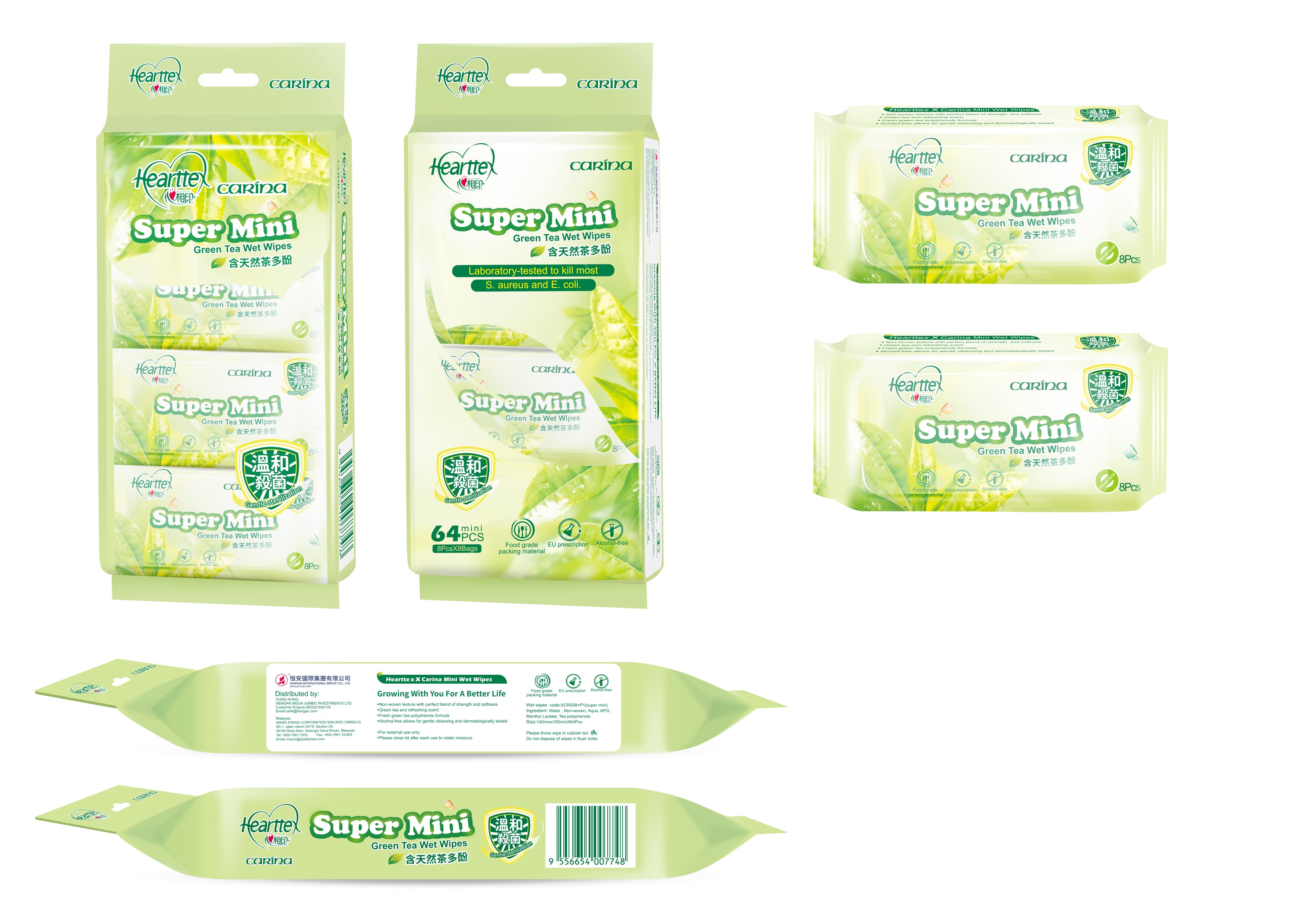 PM108 Hearttex 迷你濕紙巾 綠茶味 8片/小包(8包裝)
