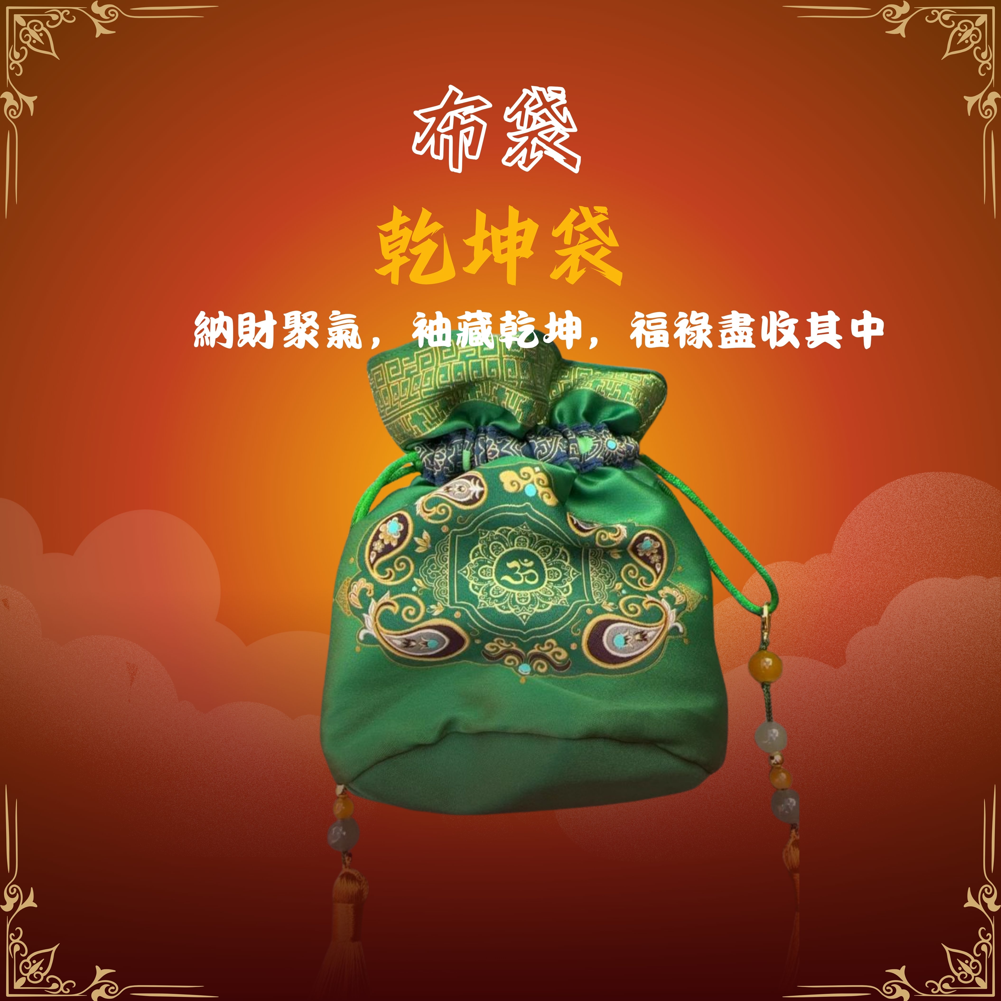 採用五色錦緞手工縫製,袋口以金線繡制先天八卦圖。內裝五穀、五色石、五行符等開光聖物,經道家法師依古法祭煉。可懸掛於家中財位或隨身攜帶,具有納財聚氣、轉運消災之效,是道家秘傳的改運法寶。