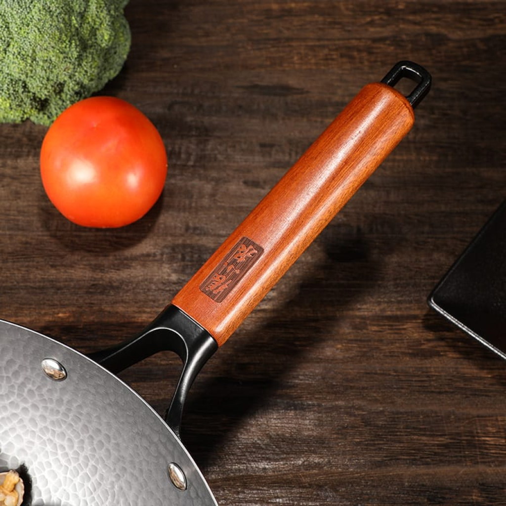 高純度鐵 不易生銹更耐用 輕量鍋身 單手可煎鍋 無塗層 安全更健康 錘紋鍋身 物體不易粘 日常養鍋 養出油膜輕松炒 精選配件 加厚鑄件牢固不格 純鐵鍋經過高溫鍛打 大平底更聚熱炒出鍋氣來