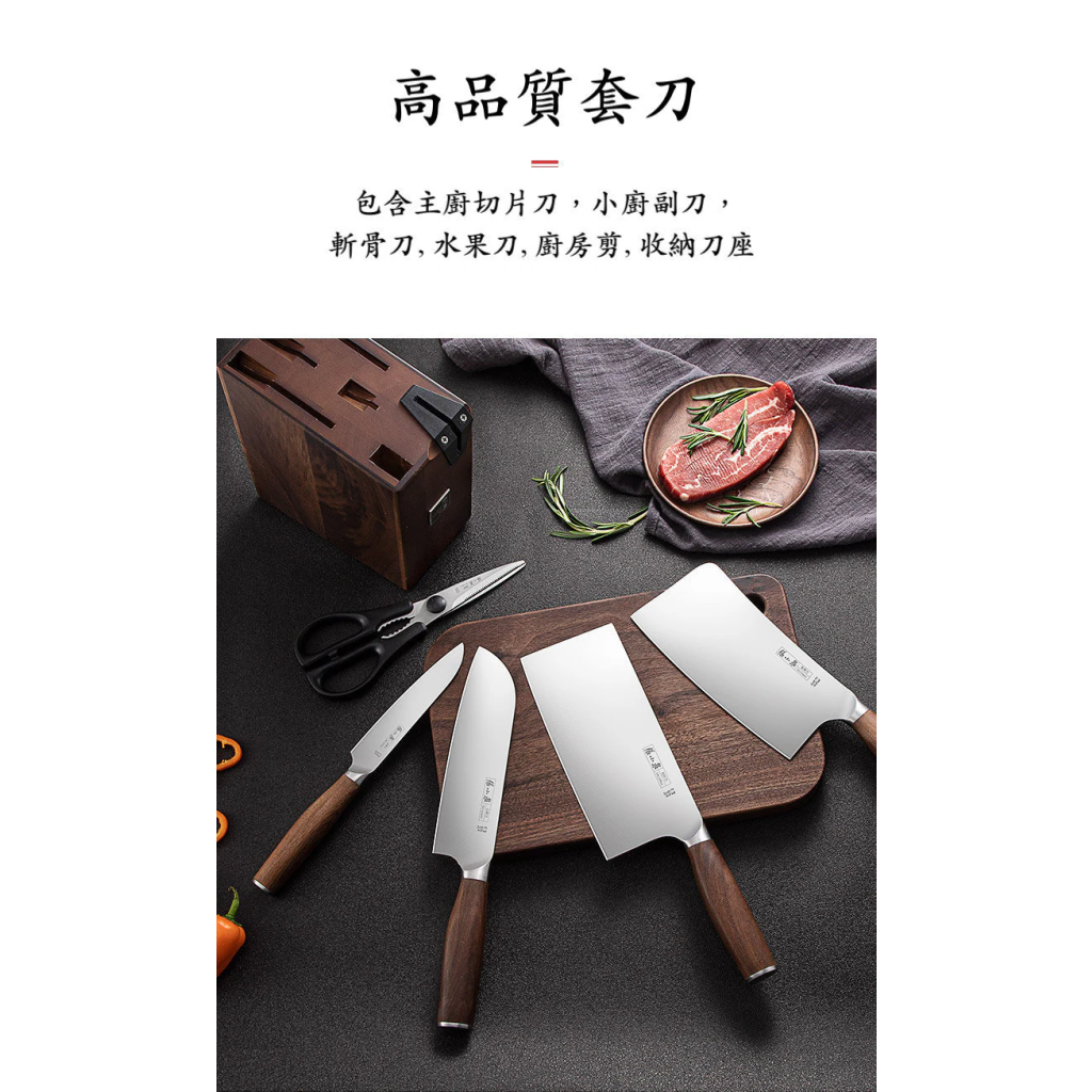 -家用切片刀砍骨刀水果刀廚具組合 -採用50cr15mov不銹鋼,碳、鉻、鉬釩比例合理分佈,結構緊密,兼具硬度和銳利,定會令親揮刀自如,彰顯品質