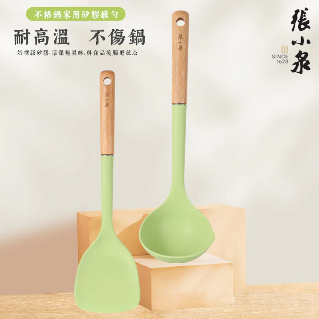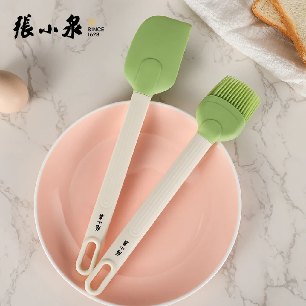 張小泉 矽膠油刷刮刀套裝2件裝(牛油果色) /櫸木柄 (牛油果色)2件裝