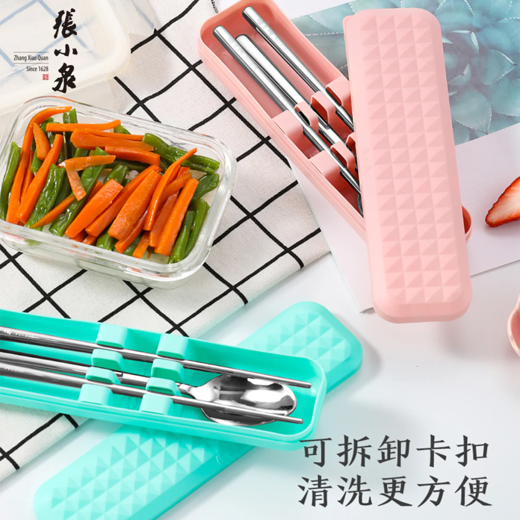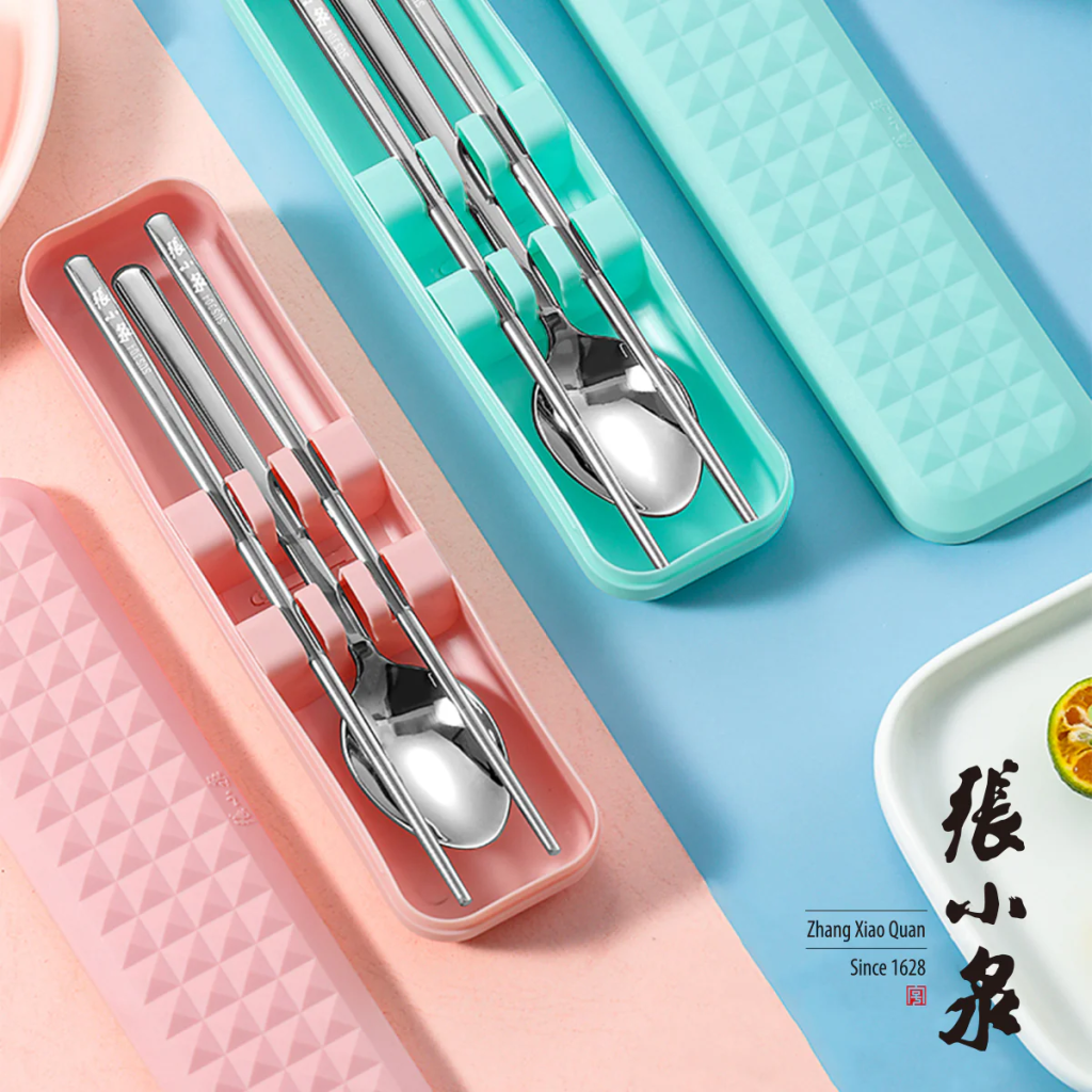 便携式餐具套裝 不銹鋼製作 激光防滑筷尖,不易藏污垢 方便餐具收納,可拆卸清洗 隨時收納,隨時帶走 菱鑽外殻,簡約大方