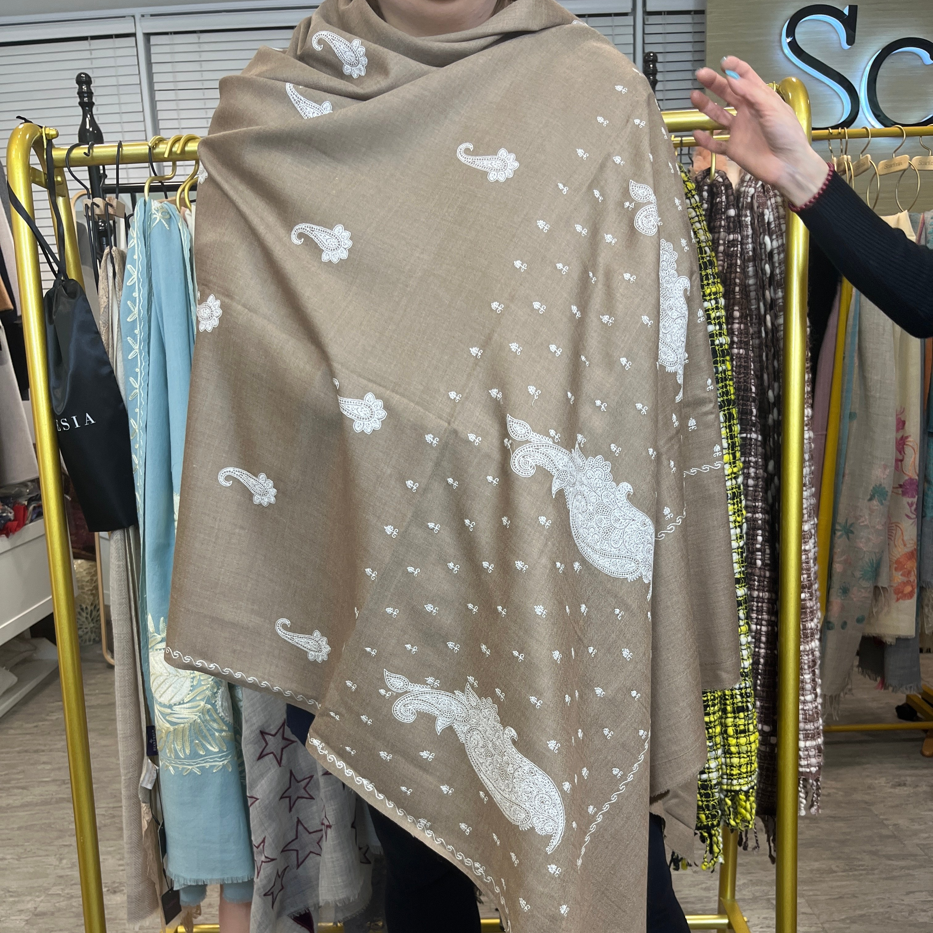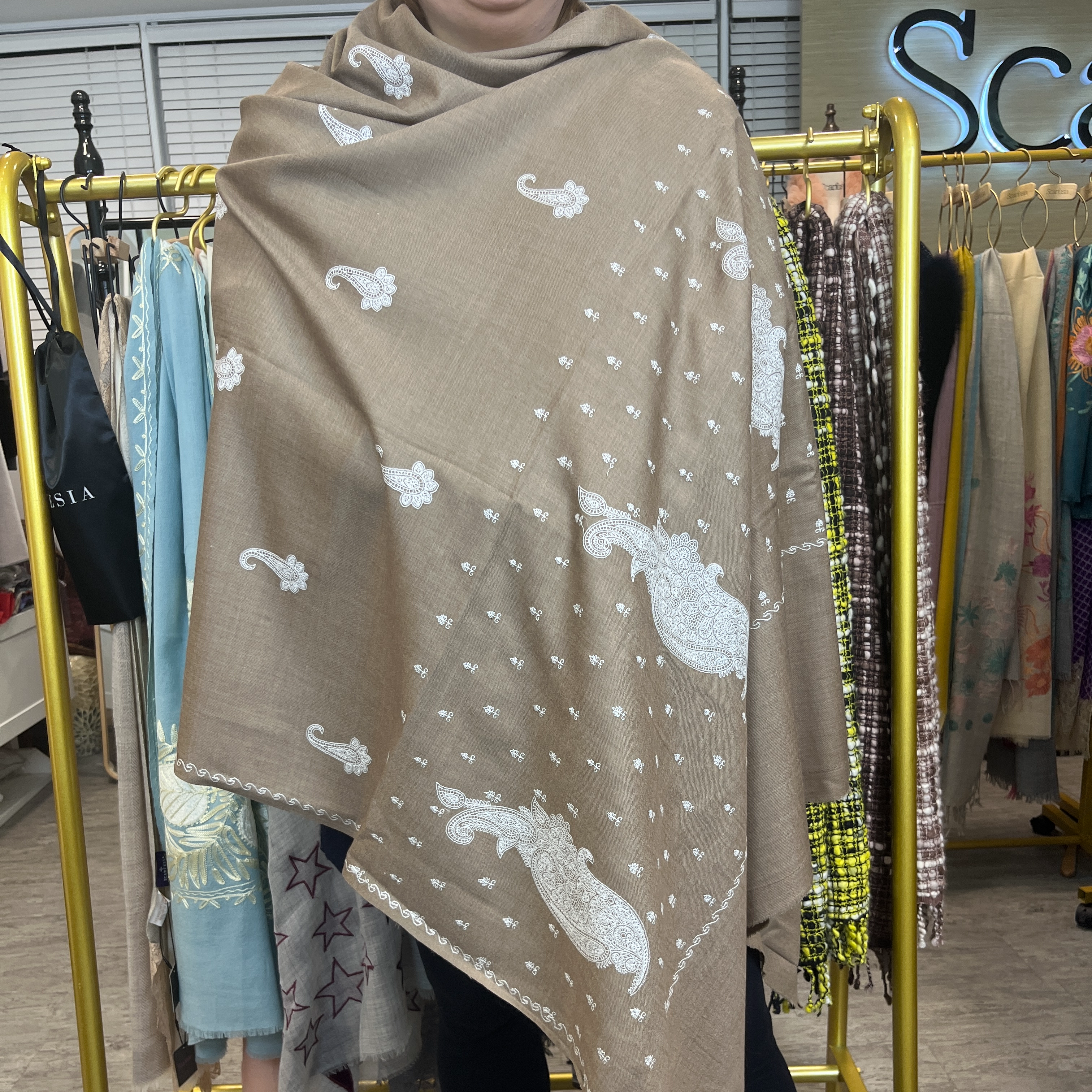 棕色斑點logo圍巾