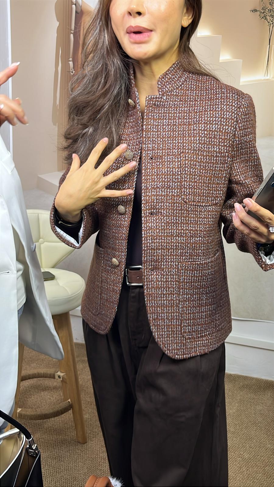 灰色小香風外套 桑蠶絲 海馬毛 綿羊毛材質