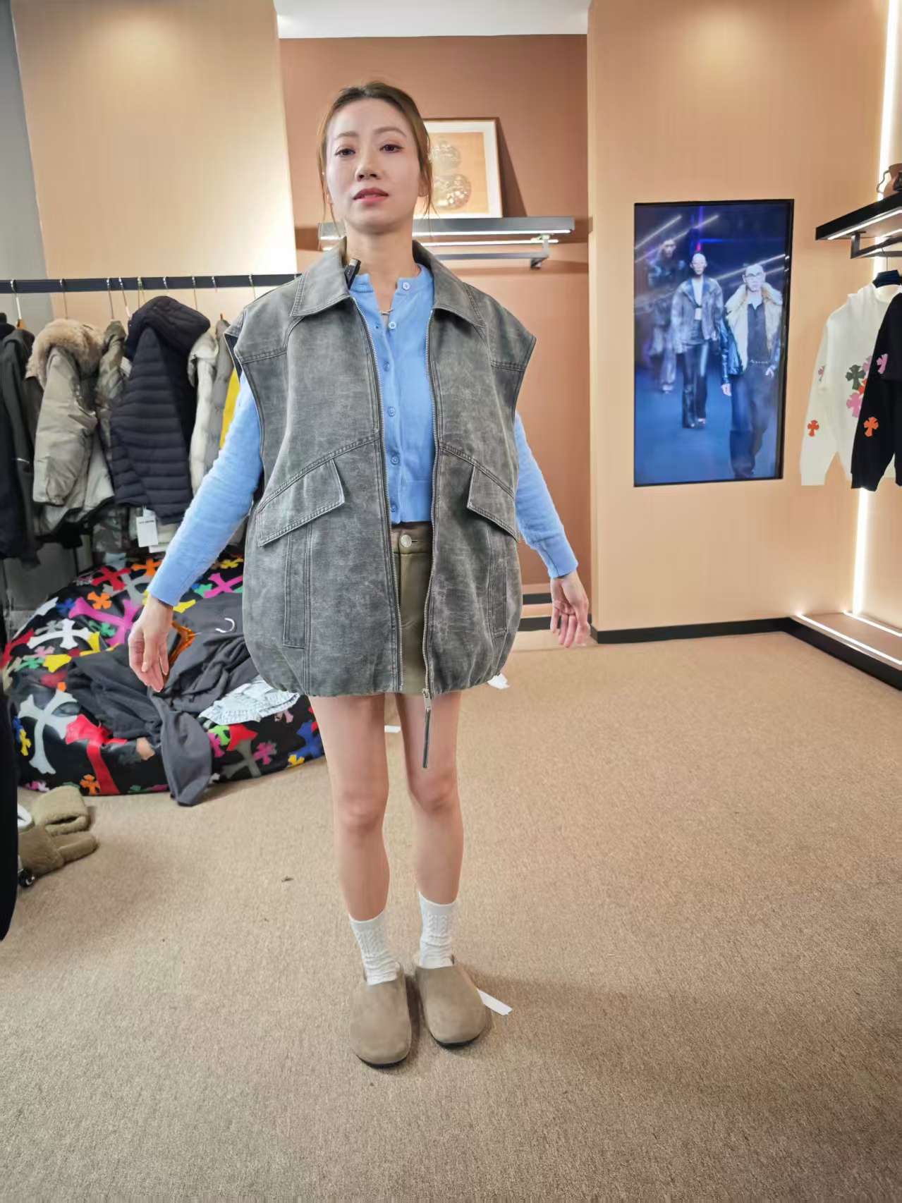 牛仔佈料夾克~(偏大)衣長 68 胸圍 50 Free size