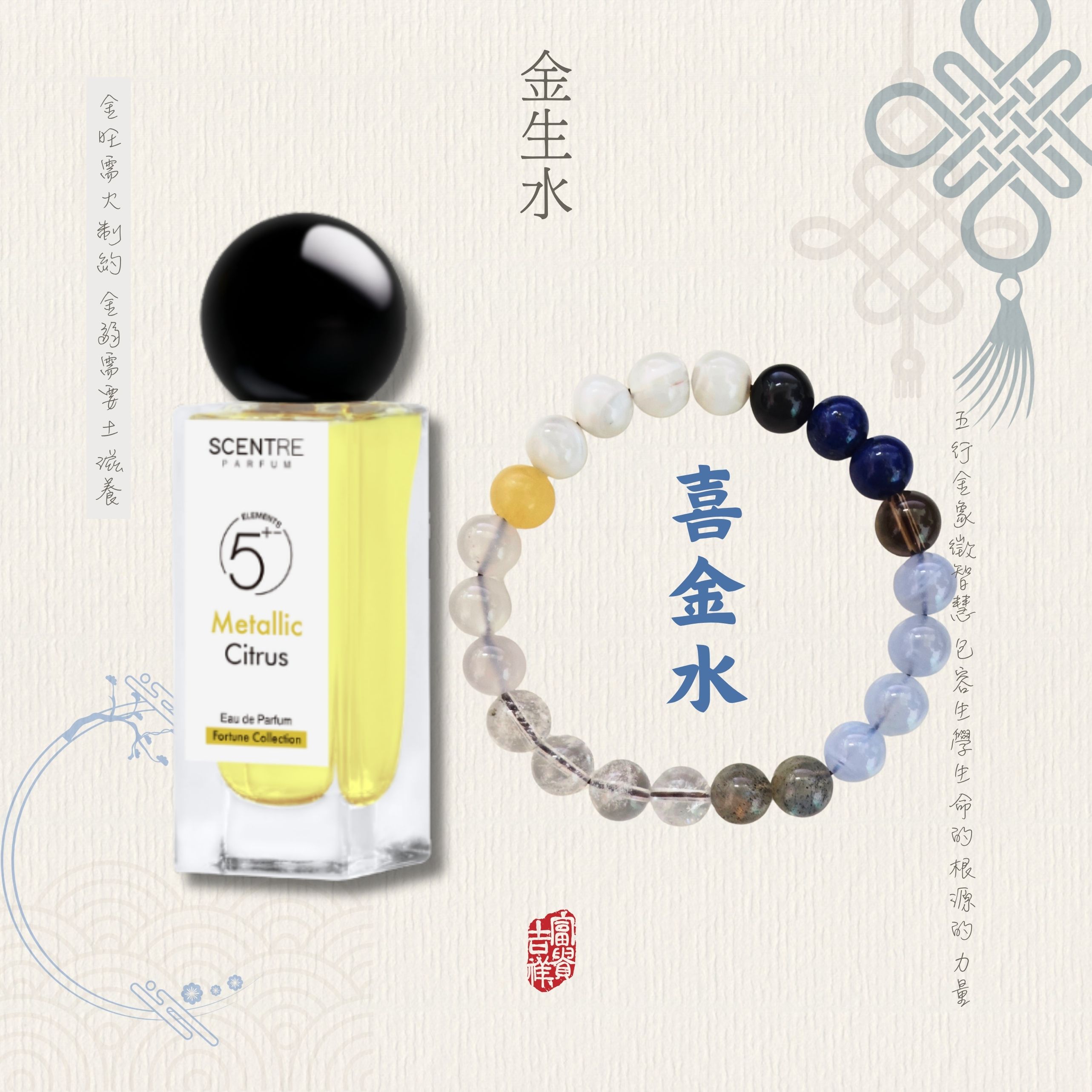 玄香五行系列香水 + 手串 金 (Metal): Metallic Citrus / 金屬柑橘