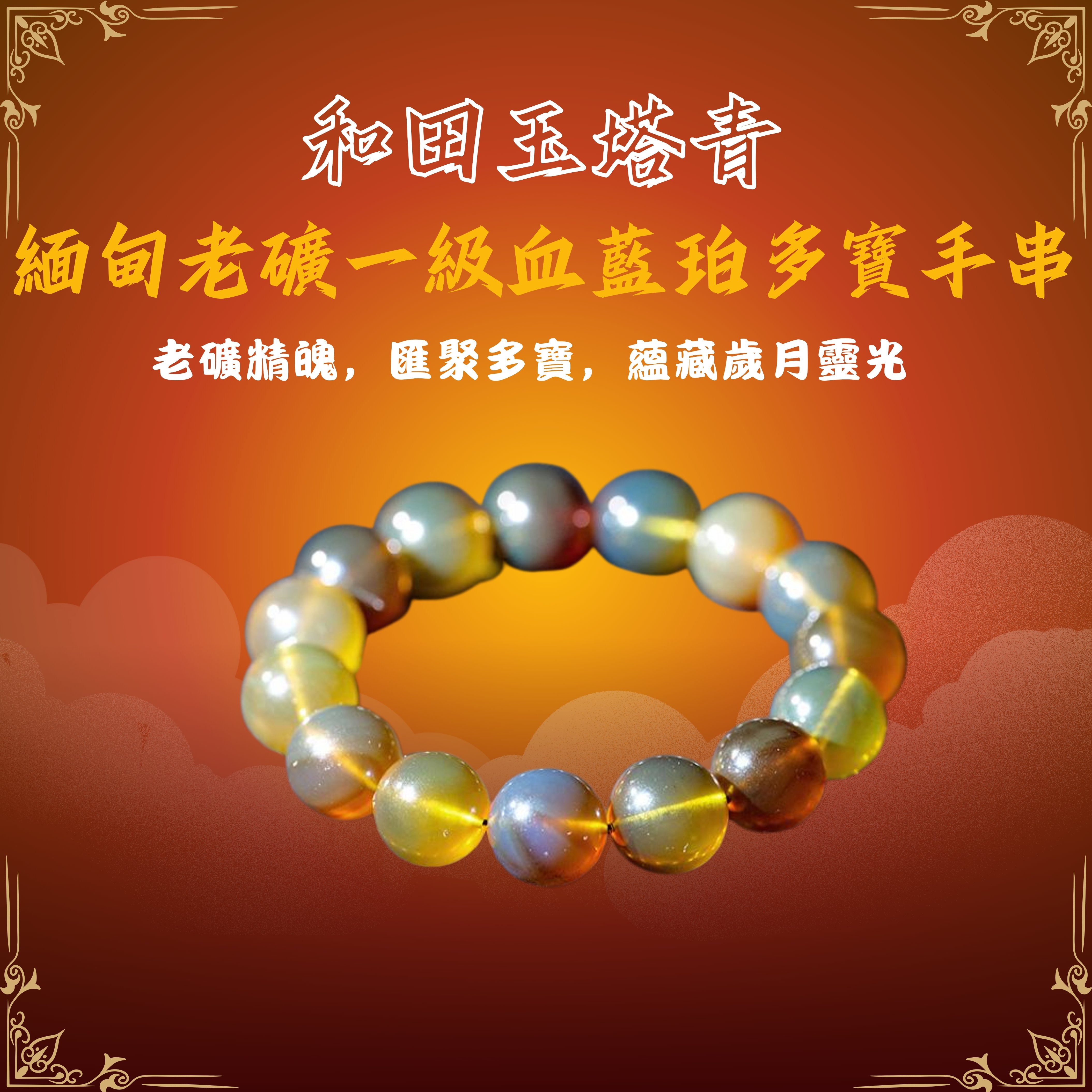 緬甸老礦一級血藍珀多寶手串 MPFQ055