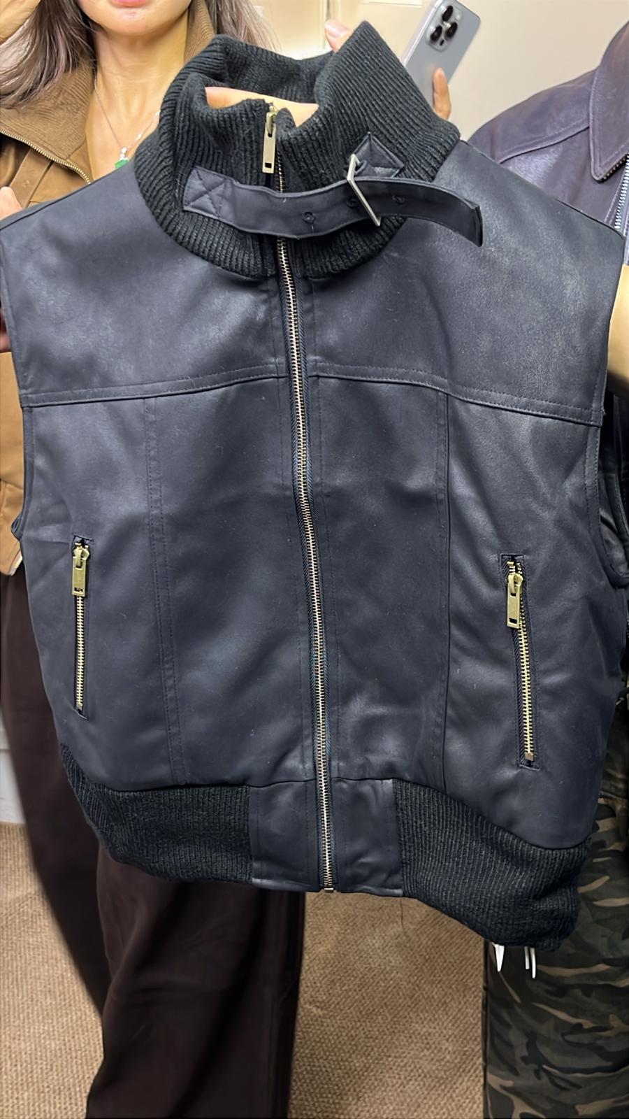 老錢風馬甲 黑色和卡其色(鹿絨)