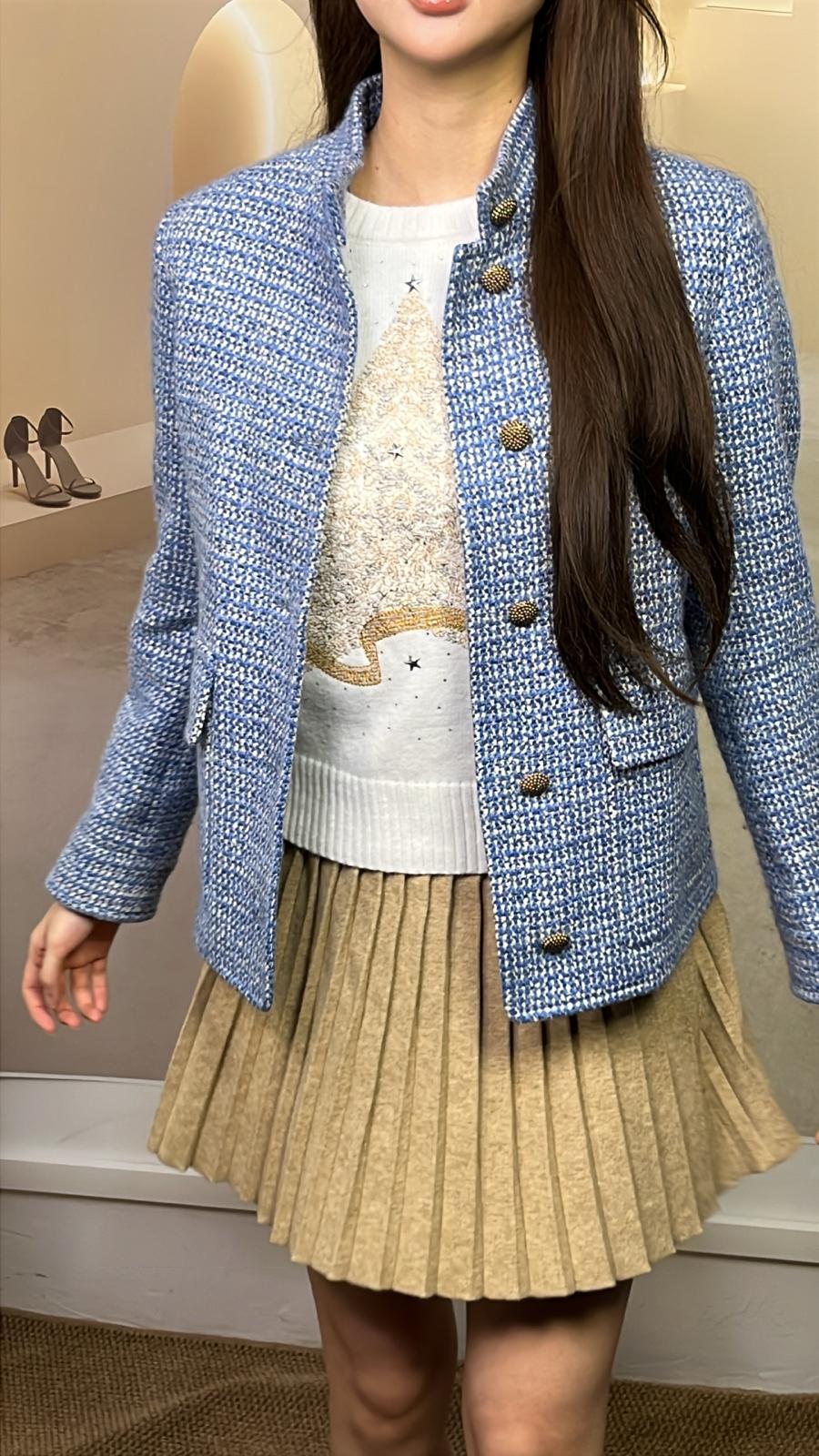藍色小香風外套 海馬毛 桑蠶絲 羊毛 1110005