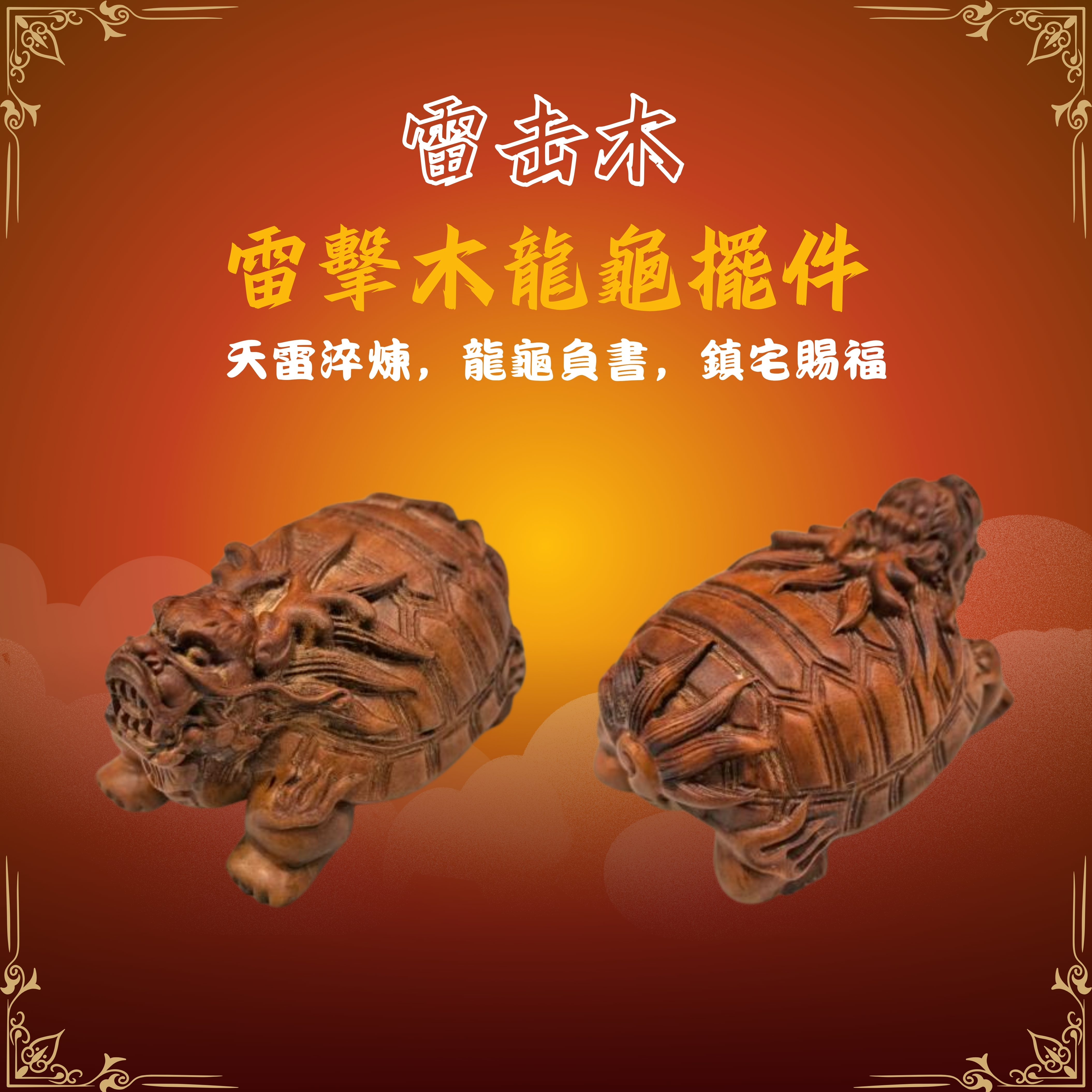 取用道家珍貴雷擊棗木,隨形雕琢龍龜法相。龜甲自然裂紋呈現雷擊痕跡,蘊含天地浩然正氣。龍龜為招財化煞聖物,背負八卦陣圖,特別適合擺放在辦公室或書房,可化解職場是非,增強權威運勢,鎮守家宅安寧。