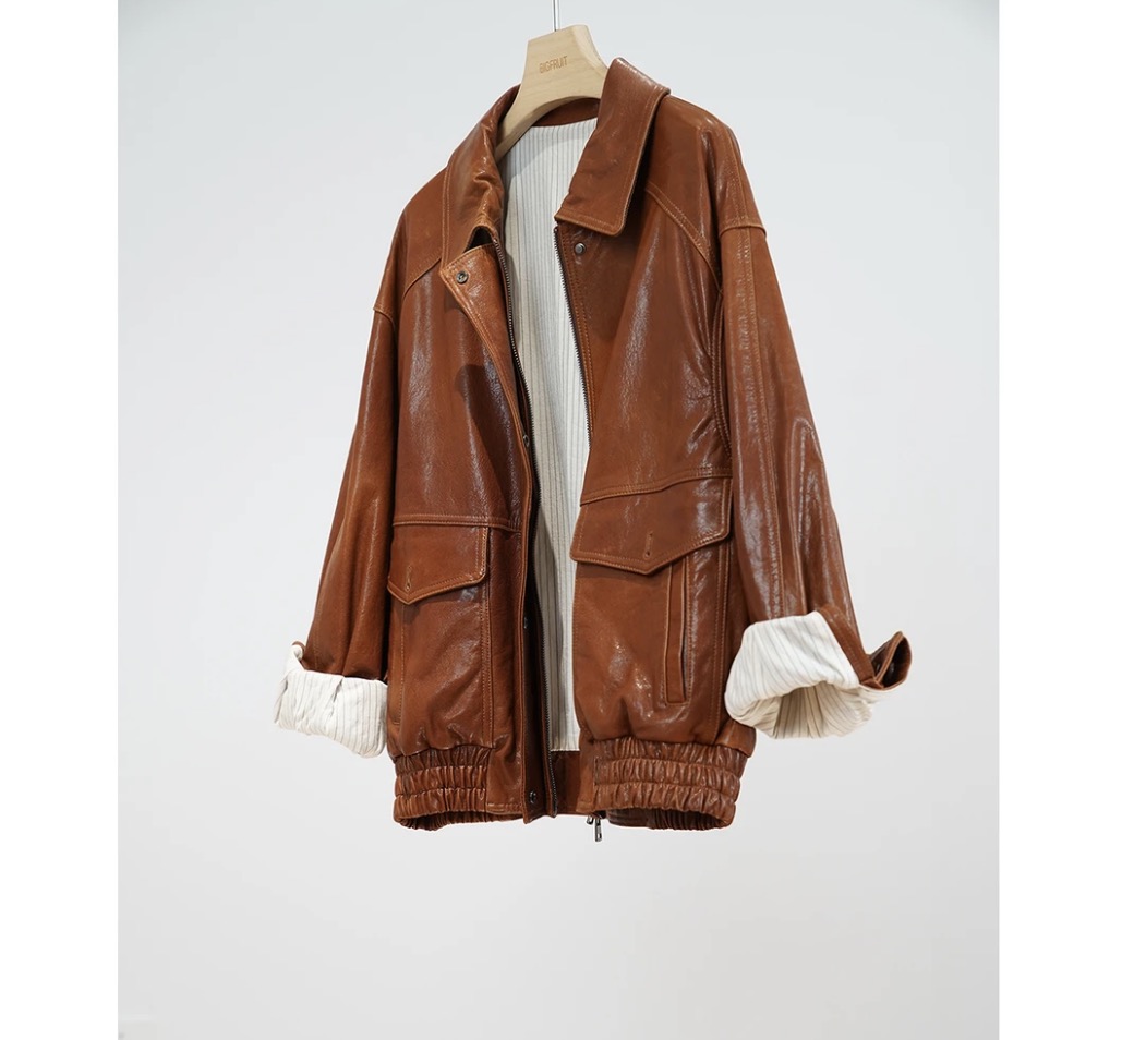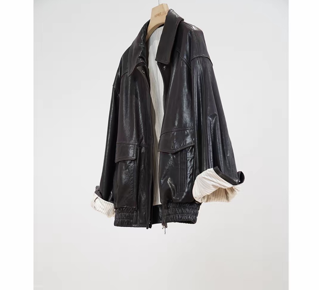 11130007 植鞣油蜡擦色进口胎羊皮衣