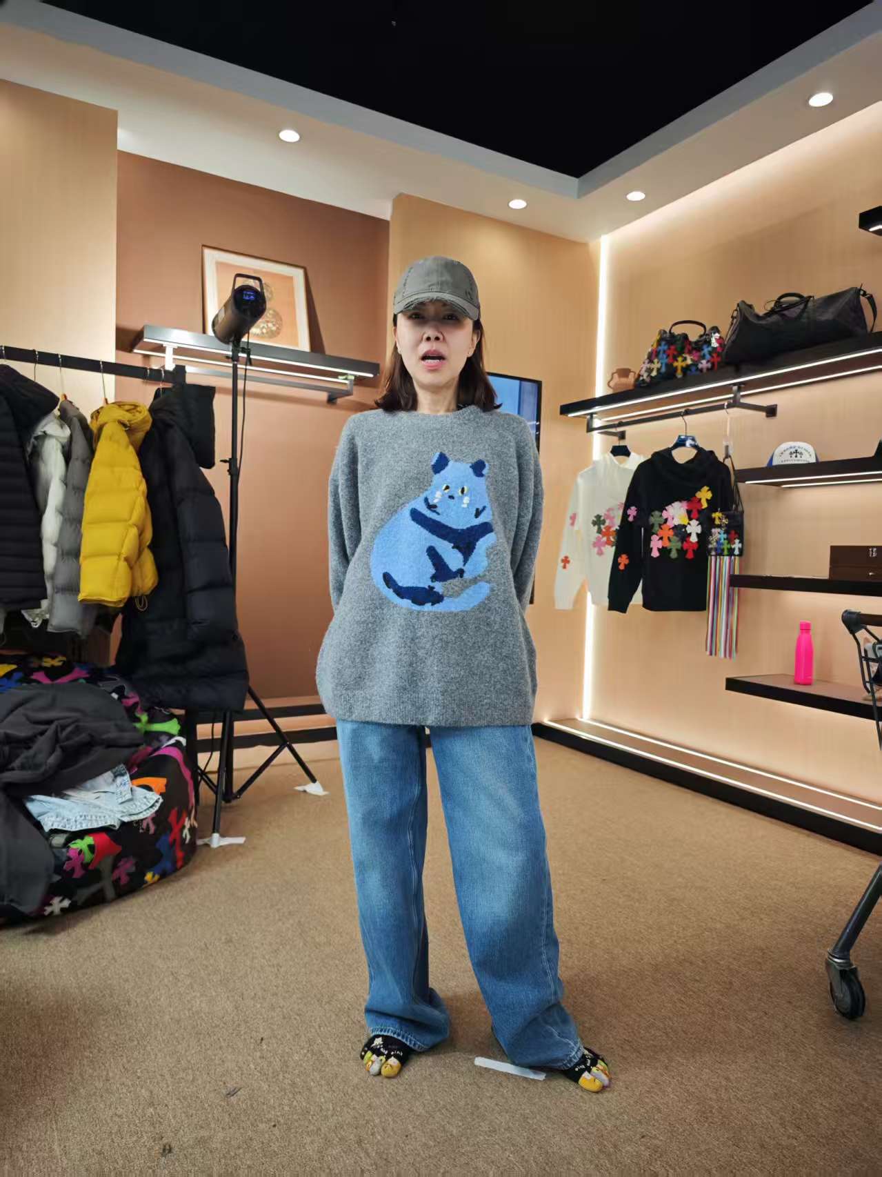 Knitted Jacquard Cat Pattern Pullover Sweater Size L 貓貓毛衣