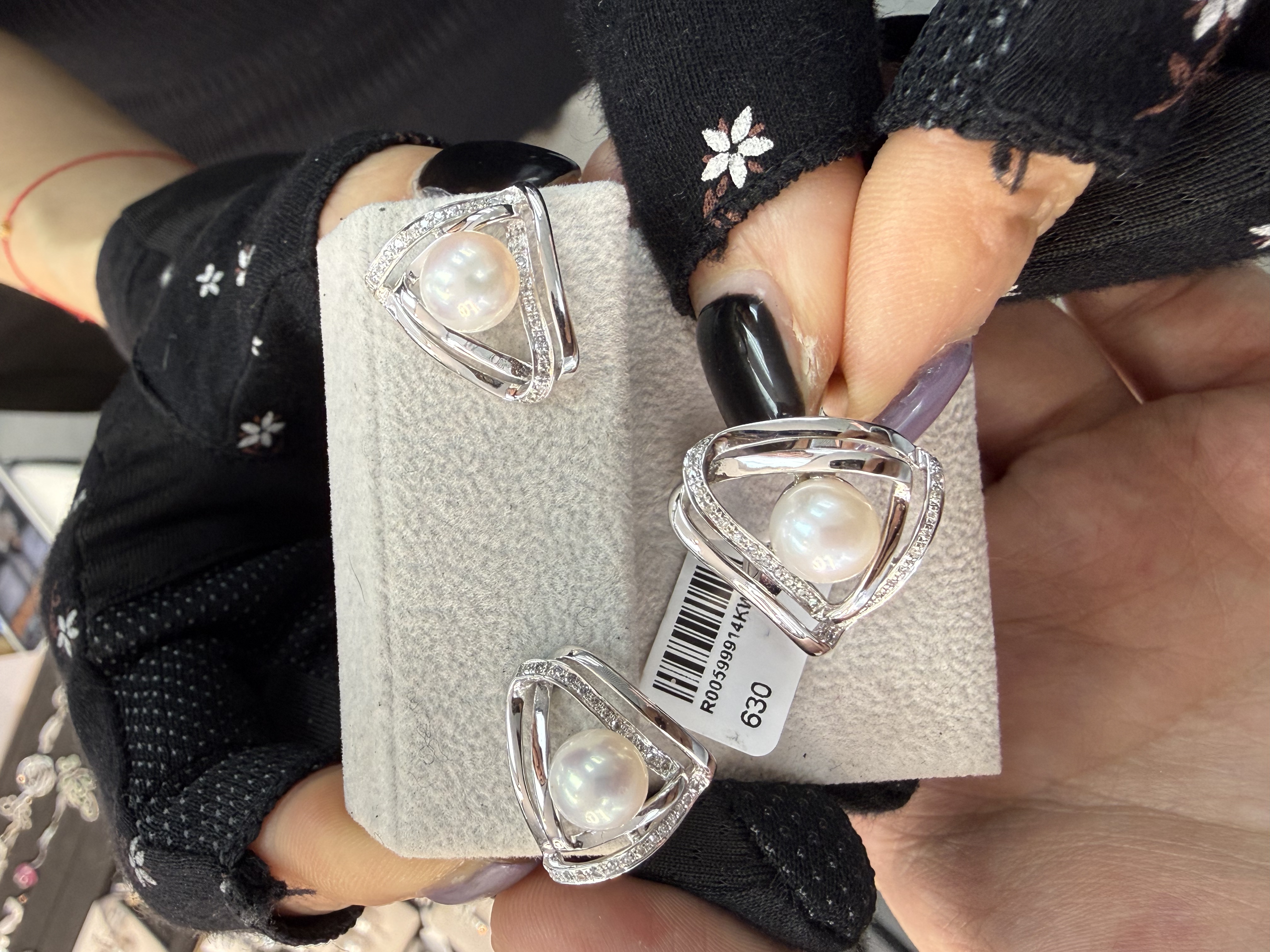 PD114 珍珠戒指+珍珠耳環*2 DIAMOND RING 1 WP 7.50MM 26 SD 0.08CT DIAMOND EARRING 2 WP 7.5MM 50 SD 0.13CT