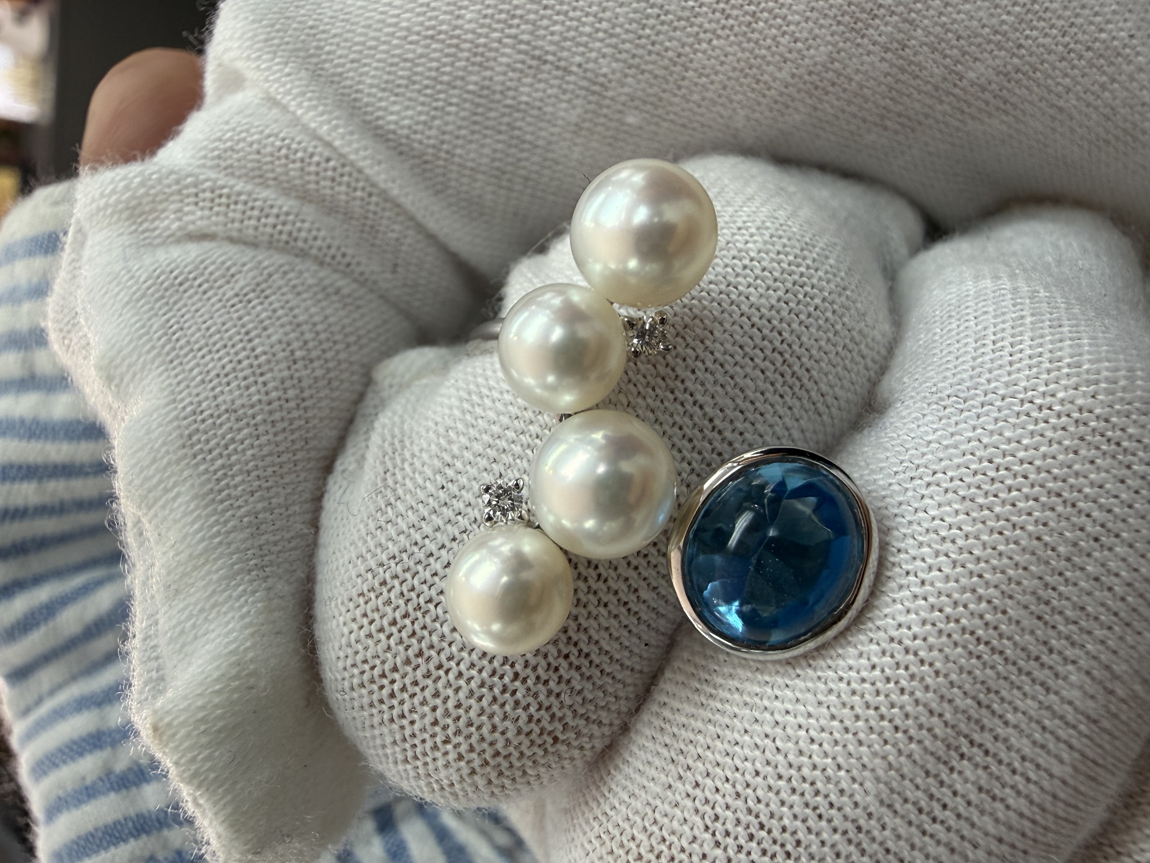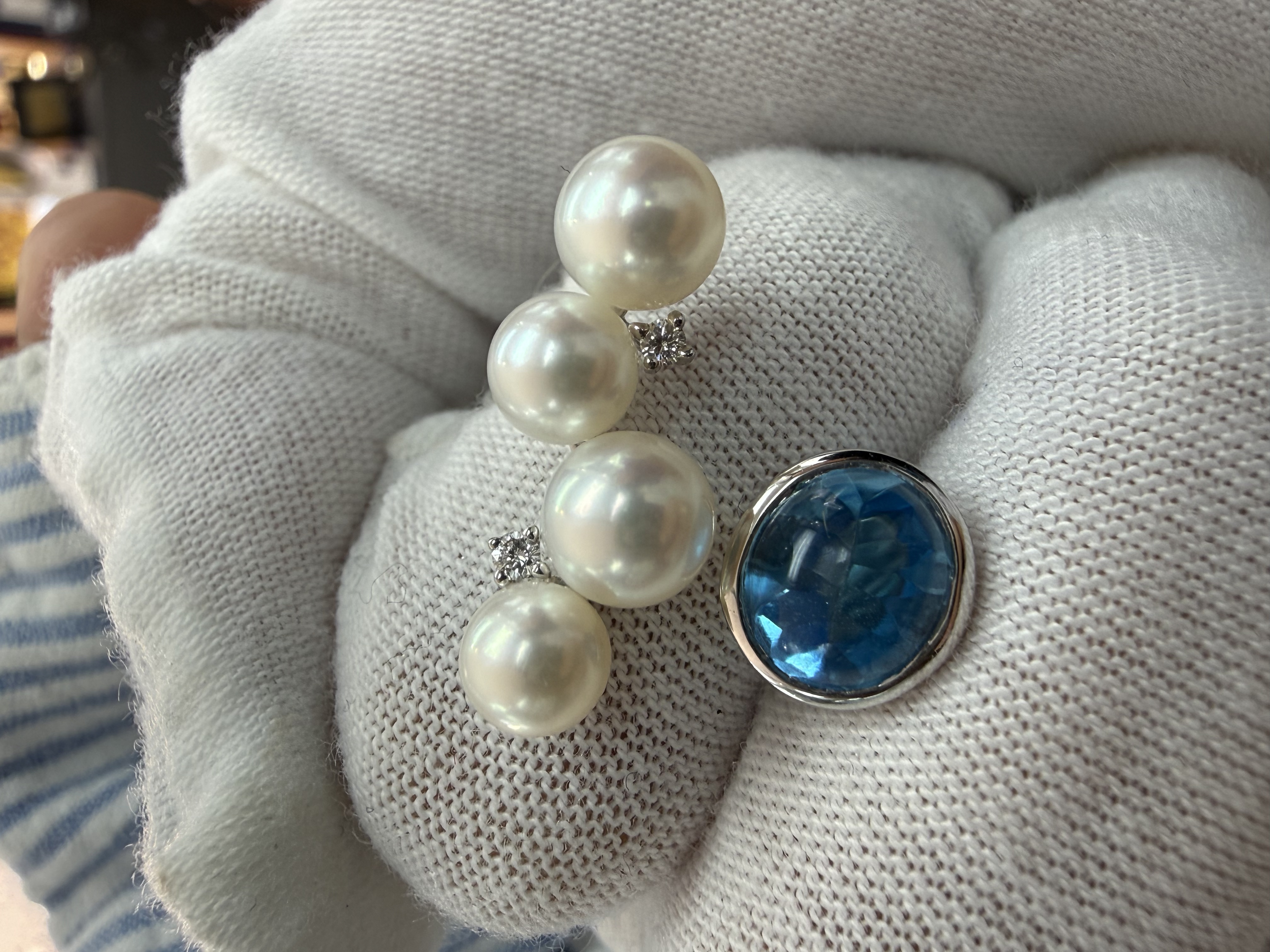 PD128 珍珠寶石戒指PEARL BLUE TOPAZ DIA RING 1 BT 2.46CT 2 WP 5.0MM 2 WP 6.0MM 2 RD 0.04CT