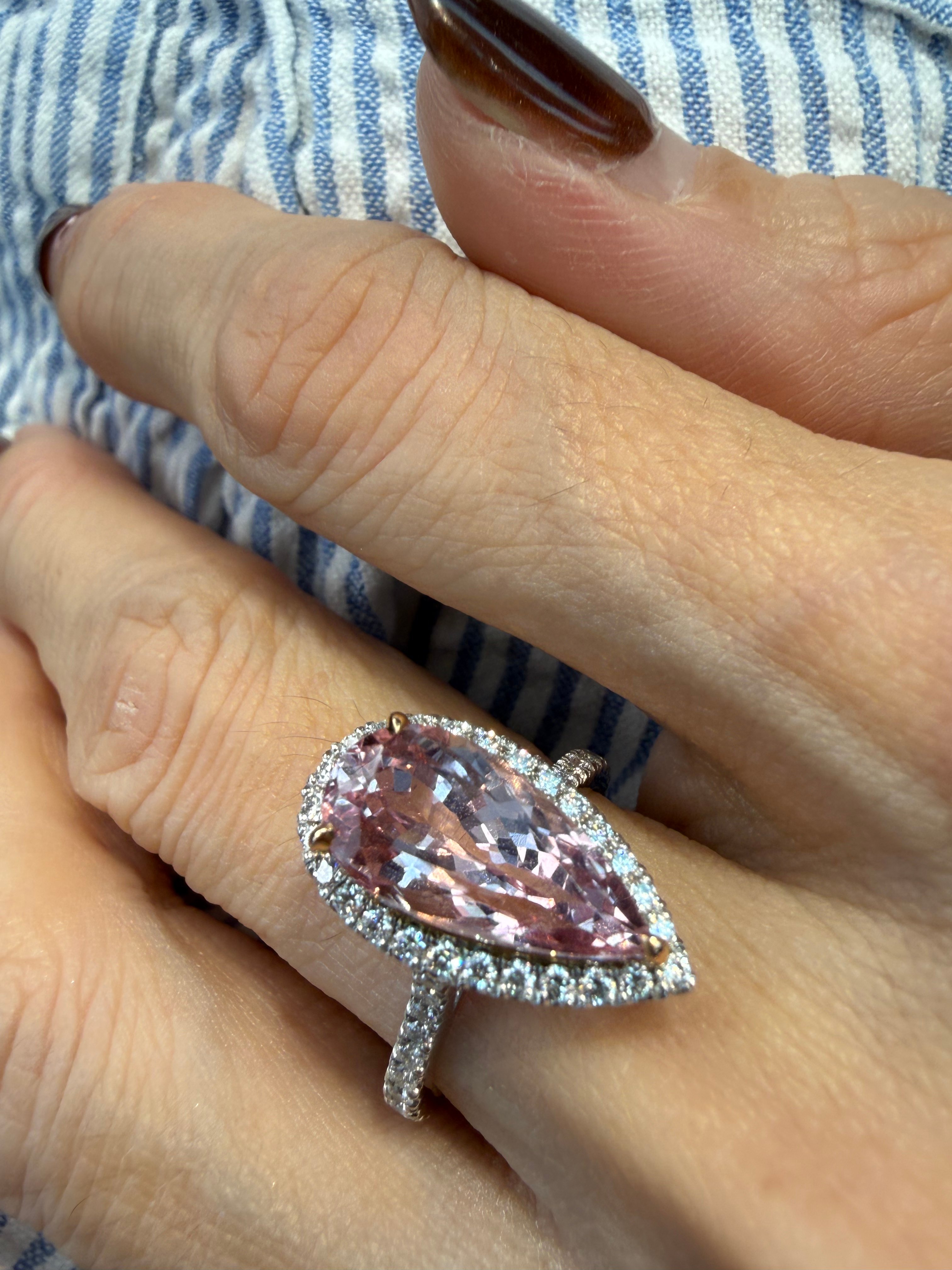 PD130 (王妃同款)MORGANITE DIAMOND RING 1 PR MORGANITE 4.08CT VIVID PINK 14.8X7.3 46 RD 0.51CT PT950 5.45 18KR 0.82