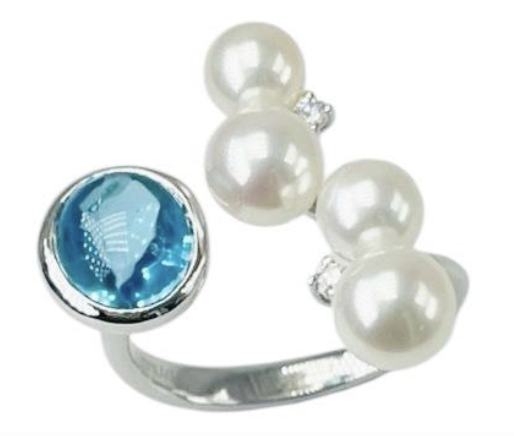 PD138 PEARL BLUE TOPAZ DIAMOND RING