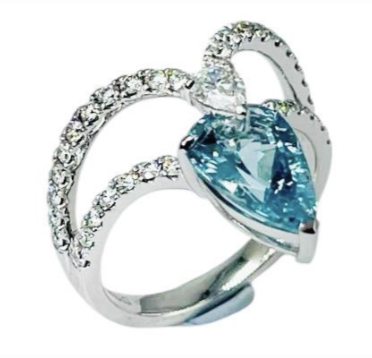 1 PR AQURMARINE 1.82CT (12X7) SANTA MARIA COLOR 1 PD 0.19CT (5X3.5) 36 RD 0.58CT PT950 7.0