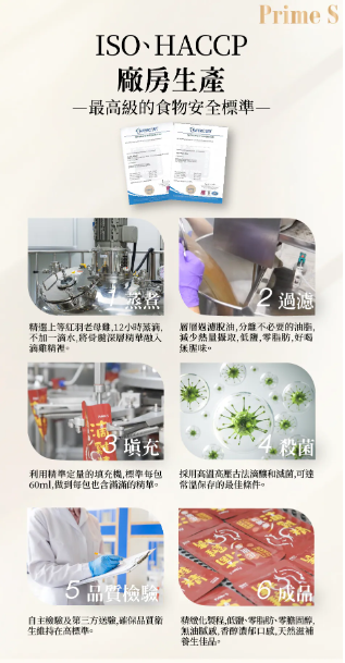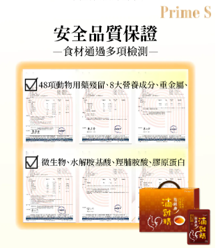 安全品質保證:食材已通過多項檢測,包括48項動物用藥殘留、8大營養成分、重金屬、微生物、水解胺基酸、羥脯胺酸、膠原蛋白