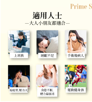 ✦適合人群:上班族、睡眠不足者、手術後病人、易疲勞,壓力大者、食欲不振,體力偏弱者、運動健身族的人士