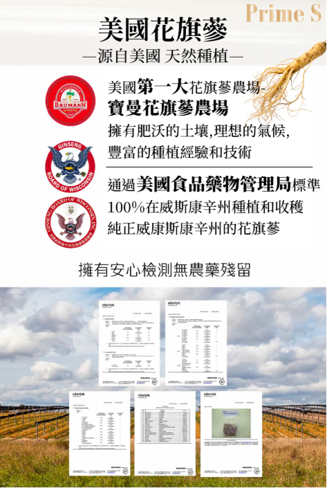 嚴選純正美國花旗參,天然100%在威斯康辛州種植,無農藥殘留