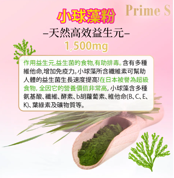 天然高效益生元:小球藻分含多種維他命纖維素 提升免疫力 幫助益生菌生長!