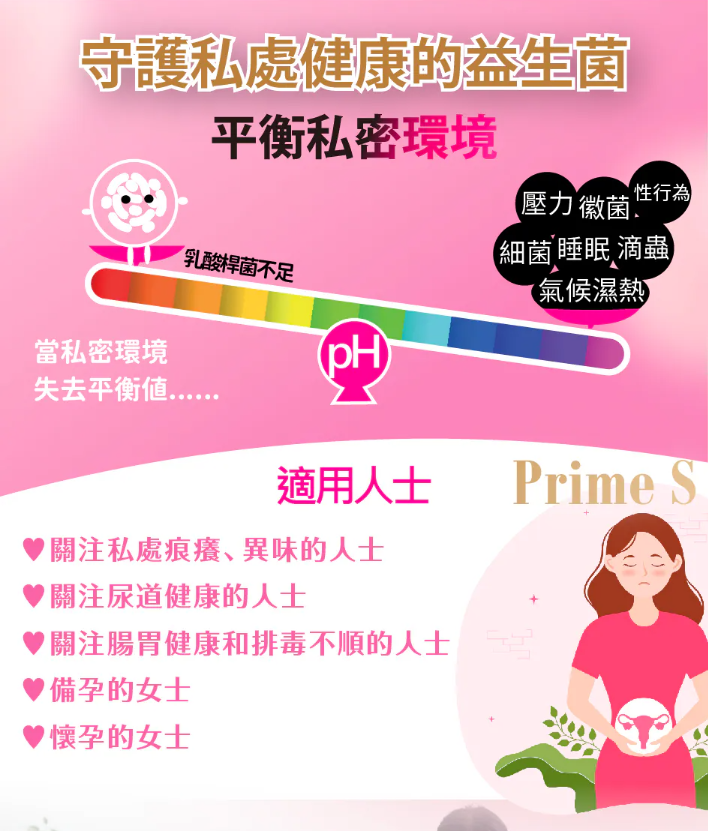 抑制壞菌黏附於私密處、分泌物多、異味、預防白色念珠球菌感染及泌尿道感染